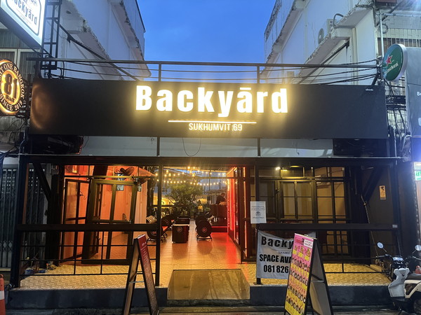 居酒屋やバーが軒を連ねる通りにある一画「Backyard」という新しい屋台村(?)の入り口付近にあるお店です。