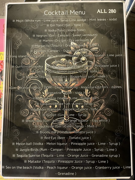 ムーガタに来たとしてもバーのカクテルやワインなどを注文できるので、一般的なオープンエアのローカルムーガタ屋さんとは一味違う体験ができそうですね。