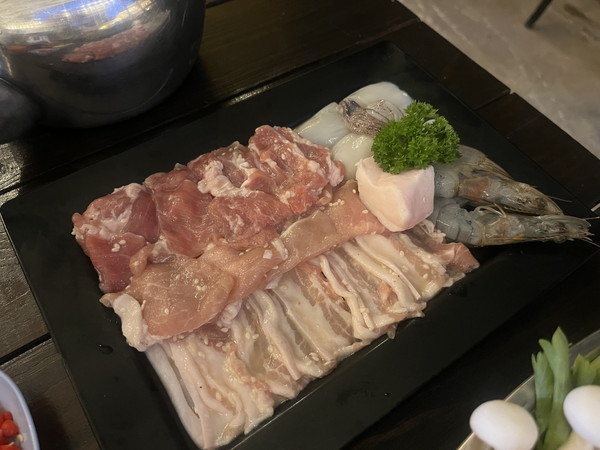 お肉は複数種類、そしてエビやイカなども入っていました。