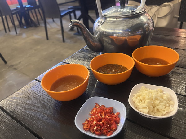 タレは辛いのと辛いのと辛いのの3種類、薬味に辛いのと臭いのです。笑