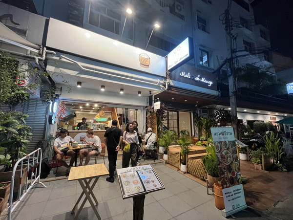 奇数側をアソーク方面に少し歩いて、ビール屋の角を曲がって少しだけ歩くと左手にお店が見えます。
