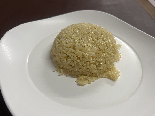 ご飯は茶色いです。これは何で炊いているんでしょう?鶏の煮汁?でもカオマンガイのご飯とは異なる味わいです。