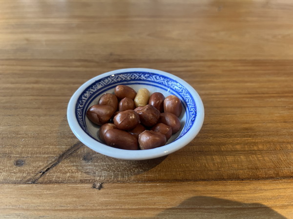注文をすると豆が出てきました。中華系タイ料理屋って豆のお通し出がちですよね。知らんけど。