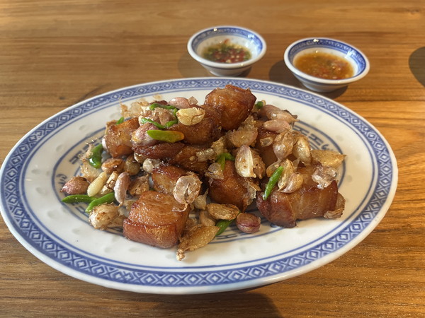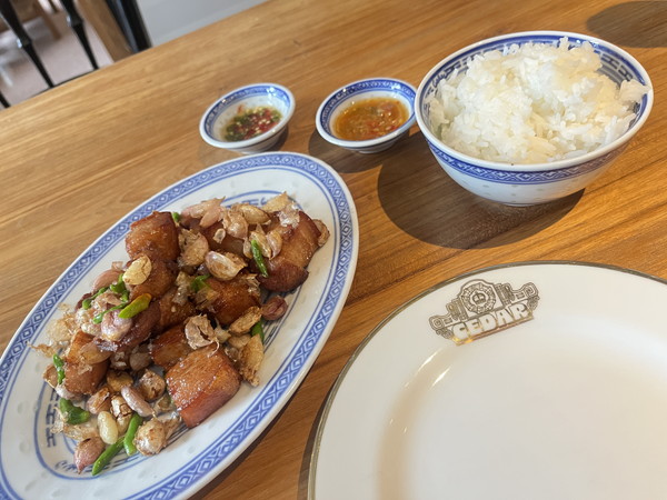 この日はシグネチャーと書かれていた豚肉のニンニク炒めとご飯を注文。