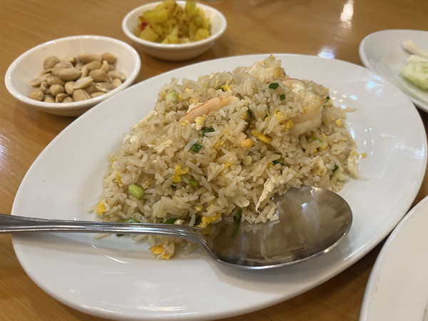 この日は2名で訪れて、フカヒレスープ、エビチャーハン、空心菜の炒め物の3種類を注文しました。