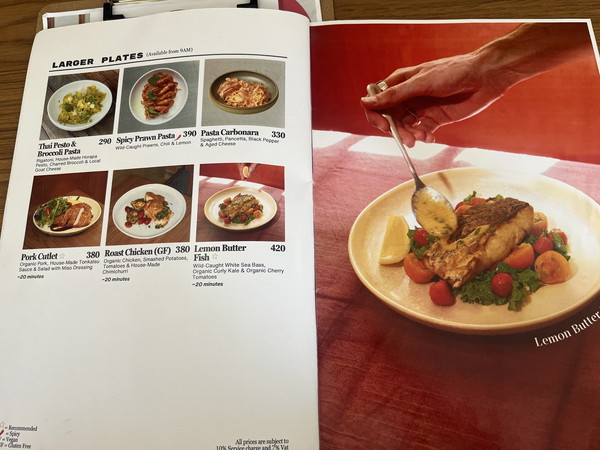 フードは全体的にチョイ高めかな?という印象を受けましたが、タイの地元農家から環境に優しい栽培方法で育てられた野菜や卵などを仕入れているということを知り、少し高いのも納得しました。