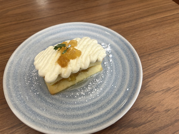 生地はフィナンシェみたいなのを何か浸しているような食感。