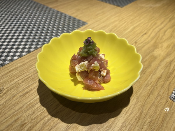 マグロとクリームチーズの和え物。和洋折衷です。美味しい。