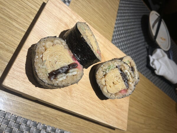 太巻き大好き芸人なので個人プレーしたんですけど、タイ人の同行者たちには刺さらなかった模様。無念。ボリューム満点で美味しかったよ。