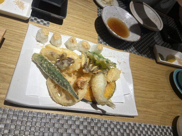 天ぷらも揚げたてサクサクで美味しかった。天ぷら大好き。